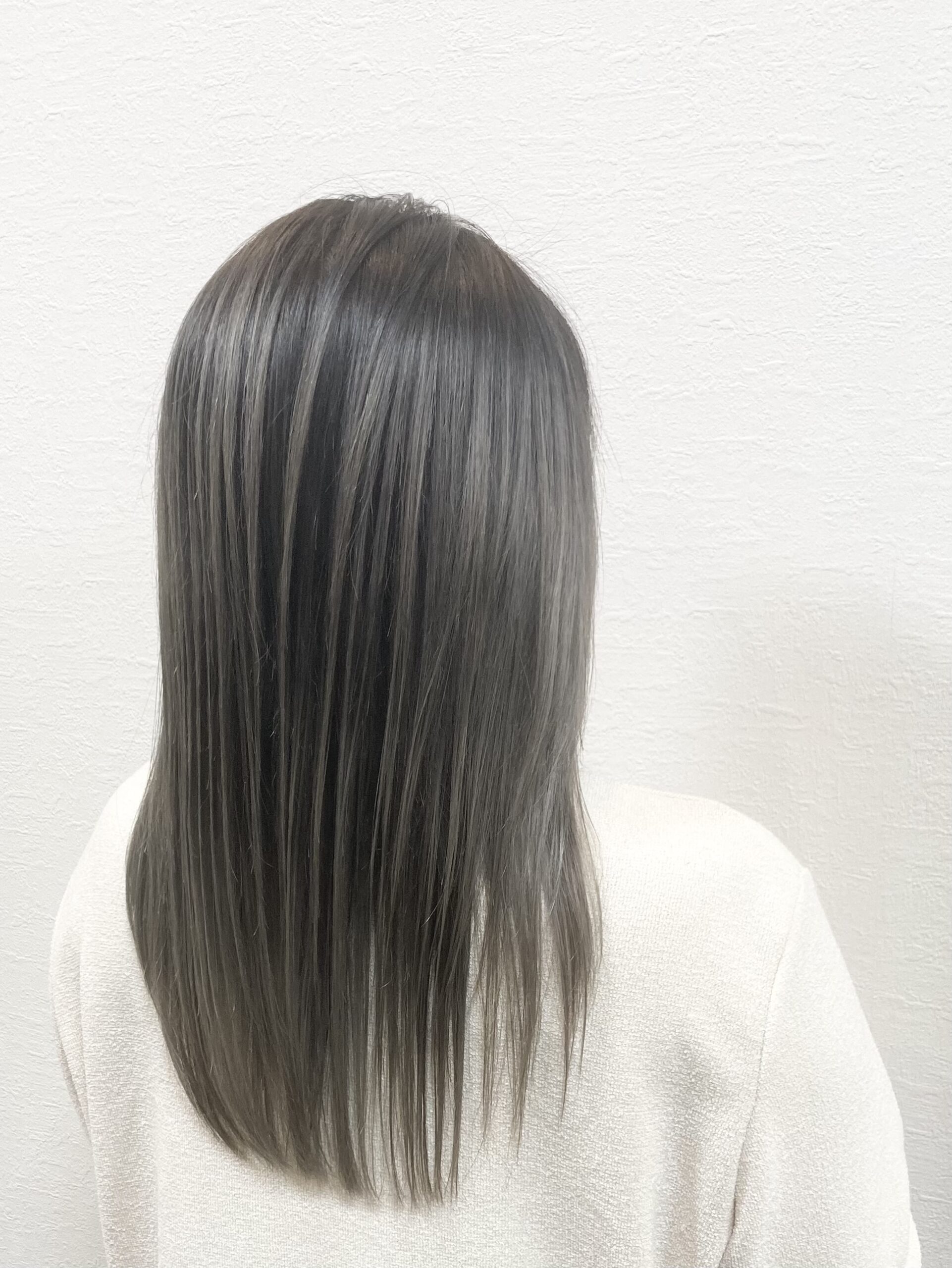 毛先のみブリーチをして、ホワイトグレージュに♪全体もアッシュグレージュにカラーリングした、ひと味違う個性派スタ...